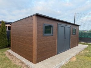 Eine Garage aus Sandwichplatten ist eine moderne, langlebige und energieeffiziente Konstruktion, die für die ganzjährige Nutzung ausgelegt ist. Wände und Dach bestehen aus hochwertigen Sandwichpaneelen mit isolierendem Kern, was eine sehr gute Wärme- und Schalldämmung sowie einen wirksamen Schutz vor Feuchtigkeit und wechselnden Witterungsbedingungen gewährleistet.