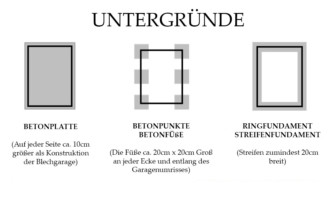 - Verankerung : (Befestigung) am Untergrund (am Betonplatte, Betonfundament oder Betonfüße)